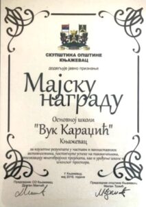 Школа је добитник Мајске награде за 2016. годину, што представља највеће јавно признање Општине Књажевац, за остварене резултате, изузетан рад и успехе на такмичењима.
