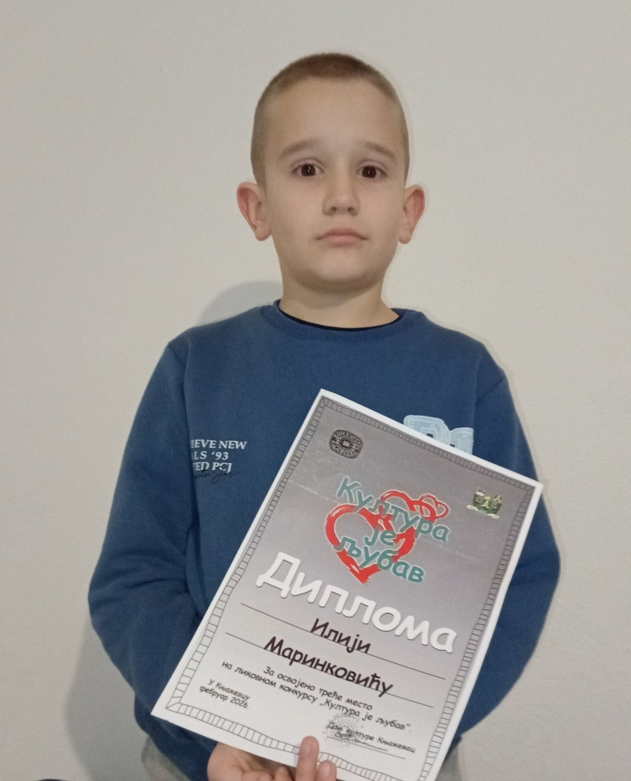 Ученици ОШ „Вук Караџић“ су се и ове године у великом броју одазвали и учетвовали на ликовном конкурсу „Култура је љубав“ у организацији Дома културе. Међу награђеним ученицима нашли су се: Катарина Јовановић, ученица 4/2 разреда, која је освојила 1. место, Арсеније Миловановић 1/2, који је освојио 2. место , као и ученик Илија Маринковић 1/2, који је освојио 3. место. Честитамо награђеним ученицима и њиховим менторима!